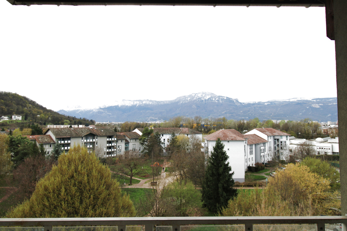 salle de bains avec fenêtre, vues dégagées sur massifs montagneux, proximité tramway et train, possibilité garage en sus .